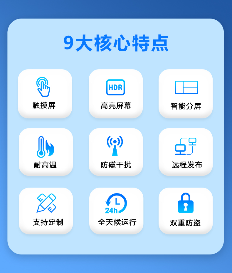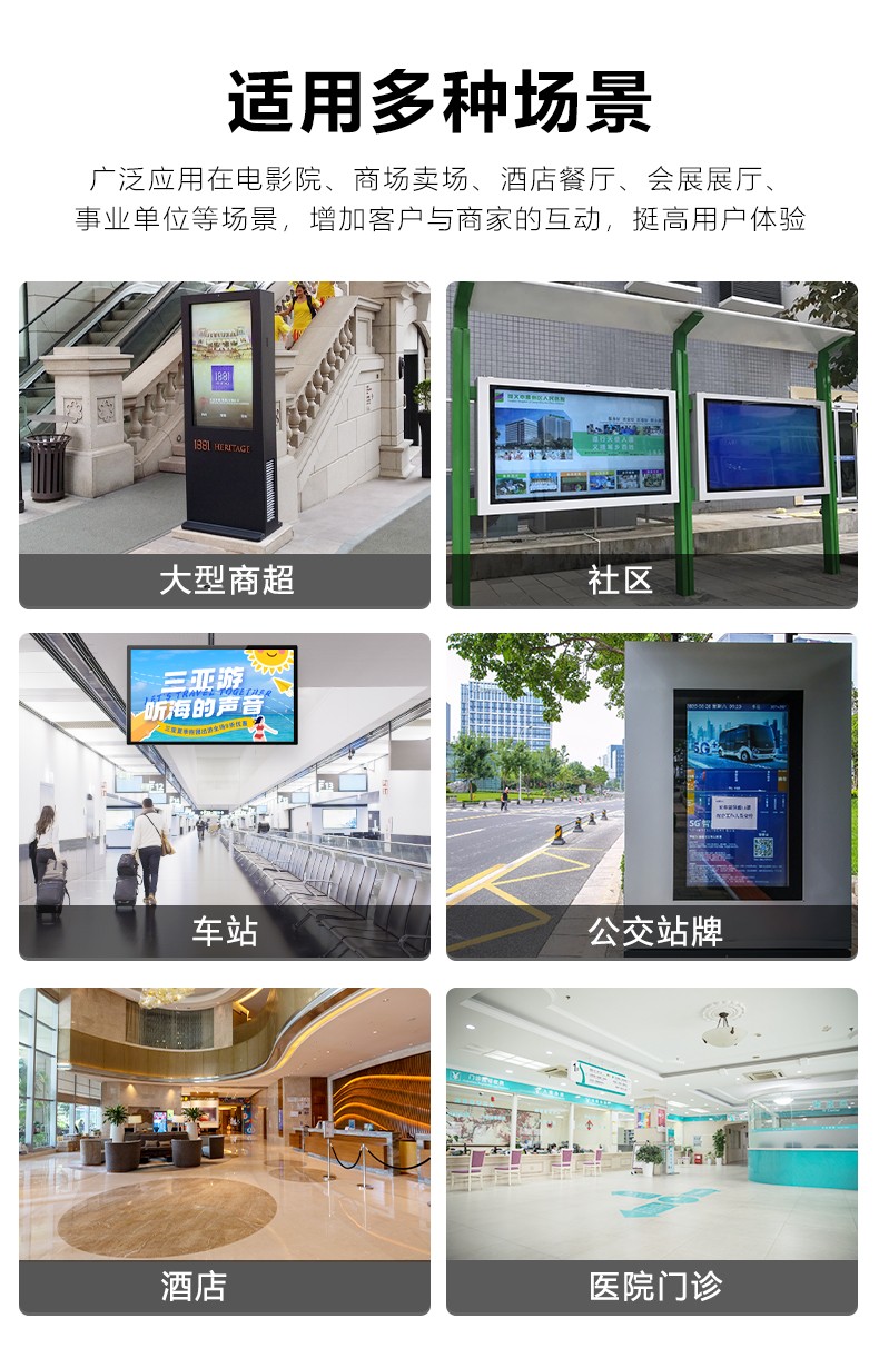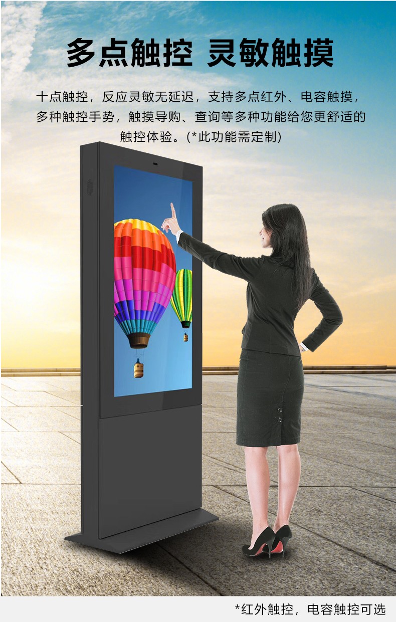 深圳市乐触世界科技有限公司专业生产销售32~86寸户外广告机,是深圳地区户外广告机的源头厂家, 它具有防水、耐高温、抗震等特性,适应各种恶劣的户外环境条件。 我们壁挂户外广告机采用高亮度的LED显示屏或LCD显示屏,能够在阳光直射下清晰显示广告内容。